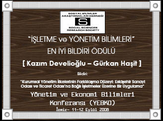 "İşletme ve Yönetim" En İyi Bildiri Ödülü