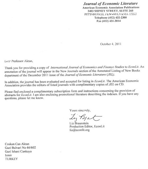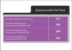 SoBiAD Sosyal Bilimler Araştırmaları Derneği, eDERGİ ARŞİVİ içinde yayınlanan üç uluslararası dergimiz dünyanın ekonomi, işletme ve yönetim bilimleri alanında en saygın indeksleme servislerinden biri olan EconLit kapsamında yeralıyor. EconLit Hakkında... EconLit with Full Text, EconLit’te bulunan kayıtların tümünü ve hiçbir sınırlama olmadan American Economic Association dergilerinin de içlerinde yer aldığı yaklaşık 550’nin üzerinde dergiyi tam metin olarak içermektedir (American Economic Review, Journal of Economic Literature ve Journal of Economic Perspectives). Bu veri tabanı aynı zamanda ekonomi ve finans alanlarında İngilizce olmayan pek çok tam metin seriyi de içermektedir. Tüm tam metin dergilerde cilt ve sayı taraması yapılabilmektedir. 1968’li yıllara kadar geri giden bu veri tabanı ekonomik literatür konusunda dünyanın en güvenilir araştırma aracıdır.